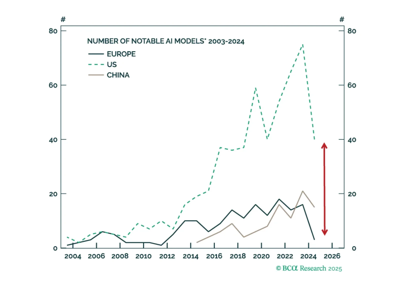 Corporate profit margins remain high and stable (Chart 22). There is no evidence that AI has boosted those margins. In fact, the promise of AI is that it would boost non-tech profit margins as the new technology is adopted en masse. That is not happening (Chart 23). In fact, ex-tech return on equity is trending lower (Chart 24). Specifically, it will be important to see small- and medium-sized companies that dominate the bulk of employment in most developed economies, adopt AI. Why they have not adopted it already, given price sensitivity, is confusing.