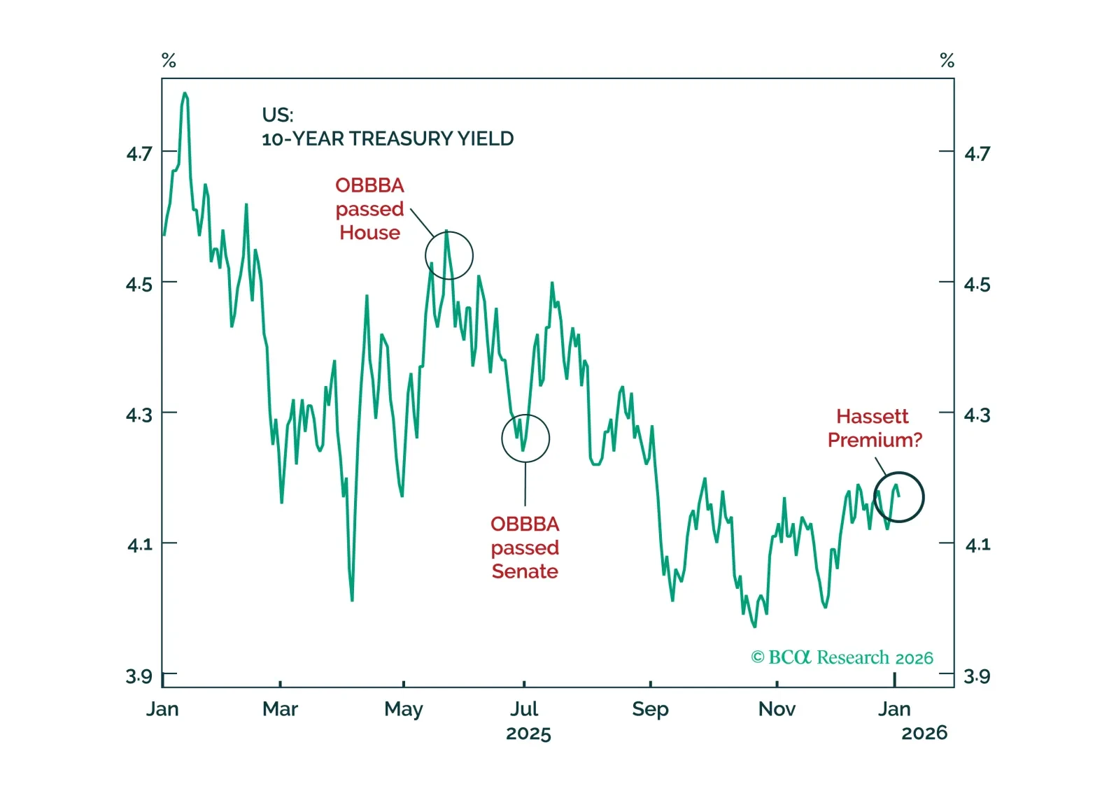 As we posited mid-year 2025,4 “if we are not under 4% [Treasury yield] by the end of the year, stocks will suffer.” The S&P 500 has hovered around our 2025 end-of-the-year target of 6,9505 since the end of October. However, it has been unable to break through it. We would posit that the “stickiness” of the US 10-year Treasury yield is the culprit. The peak in S&P 500 was essentially reached at the end of October, just as yields bottomed under 4%. But yields have backed up since then (Chart 1). The three reasons why bonds rallied from May to October are somewhat at risk.