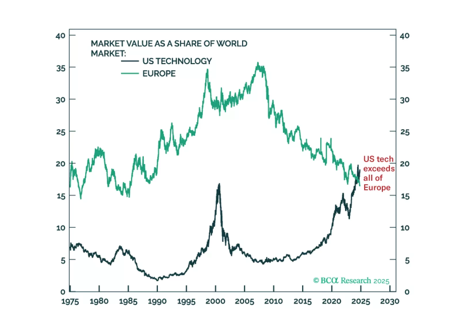 US tech stocks as a share of world stock market capitalisation is at an all-time high that exceeds even the peak of the dot com mania in 2000. At the other extreme, Europe’s share in the world stock market is at a 50-year low. While I am optimistic about the potential of generative-AI, I am not as manically optimistic as the market. And while I am concerned about the current malaise in Europe’s economy and politics, I am not as depressingly concerned as the market. For me, the AI mania combined with Europe’s current malaise is a 50-year mispricing… and opportunity. Plus: go tactically short coffee.