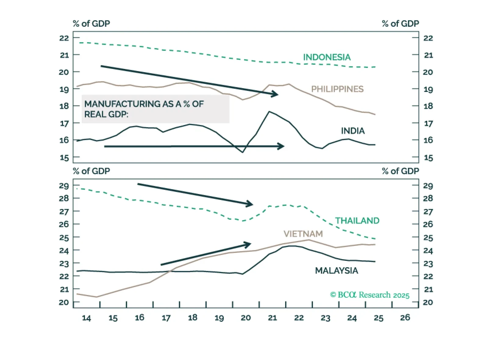Investors should not count on buoyant growth in the ASEAN and Indian economies because of manufacturing relocation away from China in the next couple of years.