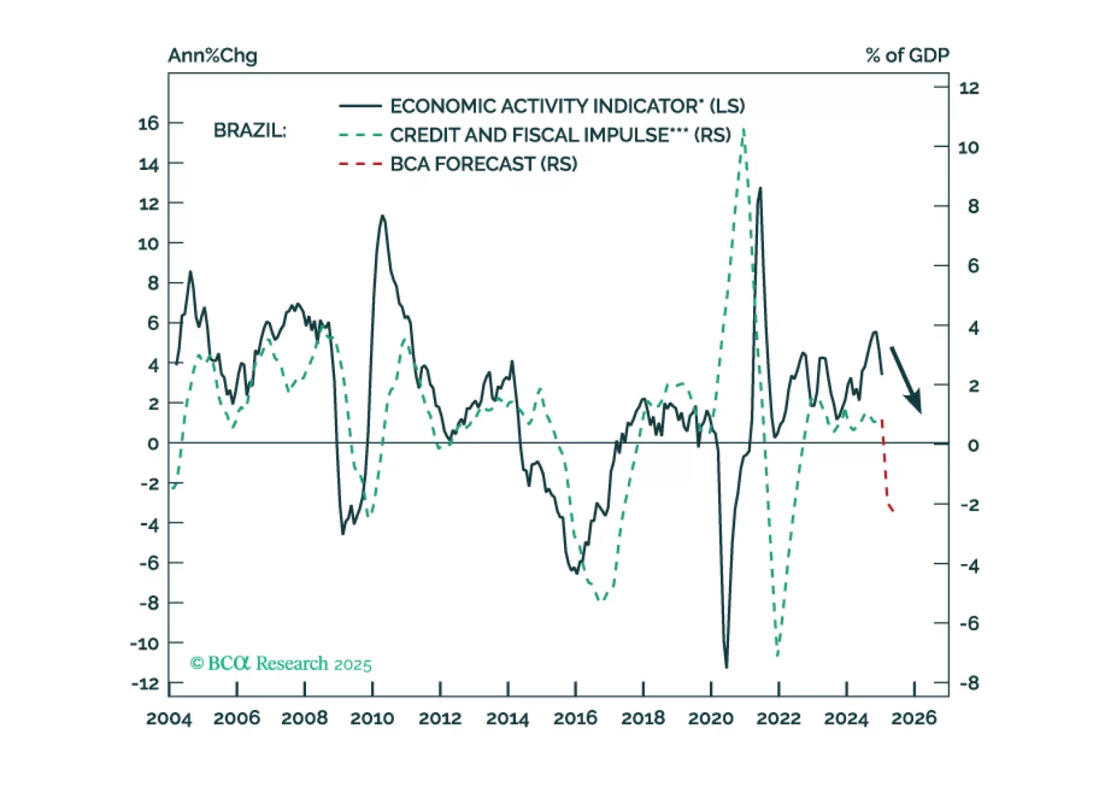 Brazilian policymakers are stuck between a rock and a hard place. There is no combination of fiscal and monetary policies that can assure decent growth, on-target inflation, a stable exchange rate, and public debt sustainability. We recommend investors maintain an underweight allocation to Brazilian fixed-income markets versus their EM peers and continue shorting BRL versus MXN. We have been bearish on the Bovespa in absolute terms and are now downgrading Brazilian stocks from neutral to underweight within an EM equity portfolio.
