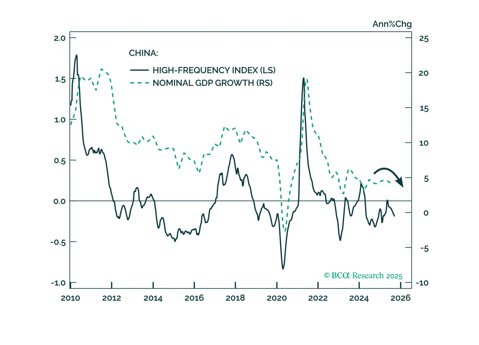 China’s policy-driven constraints prevent the “destruction” part of the creative destruction process. Instead, they entrench overcapacity, deflation, and poor profitability. We are reluctant to chase the rally in Chinese stocks in absolute terms.