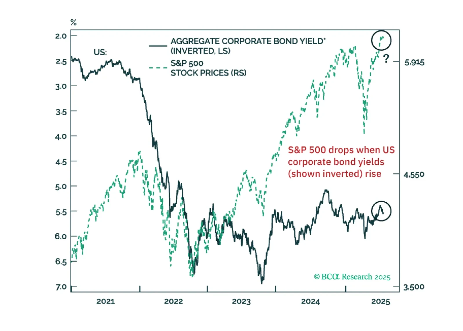 US equity investors should heed warning signals from US corporate bond yields. There are early red flags for EM share prices. Global trade will shrink in H2 2025. China’s economic tailwinds from H1 2025 – fiscal and export frontloading – are coming to an end.