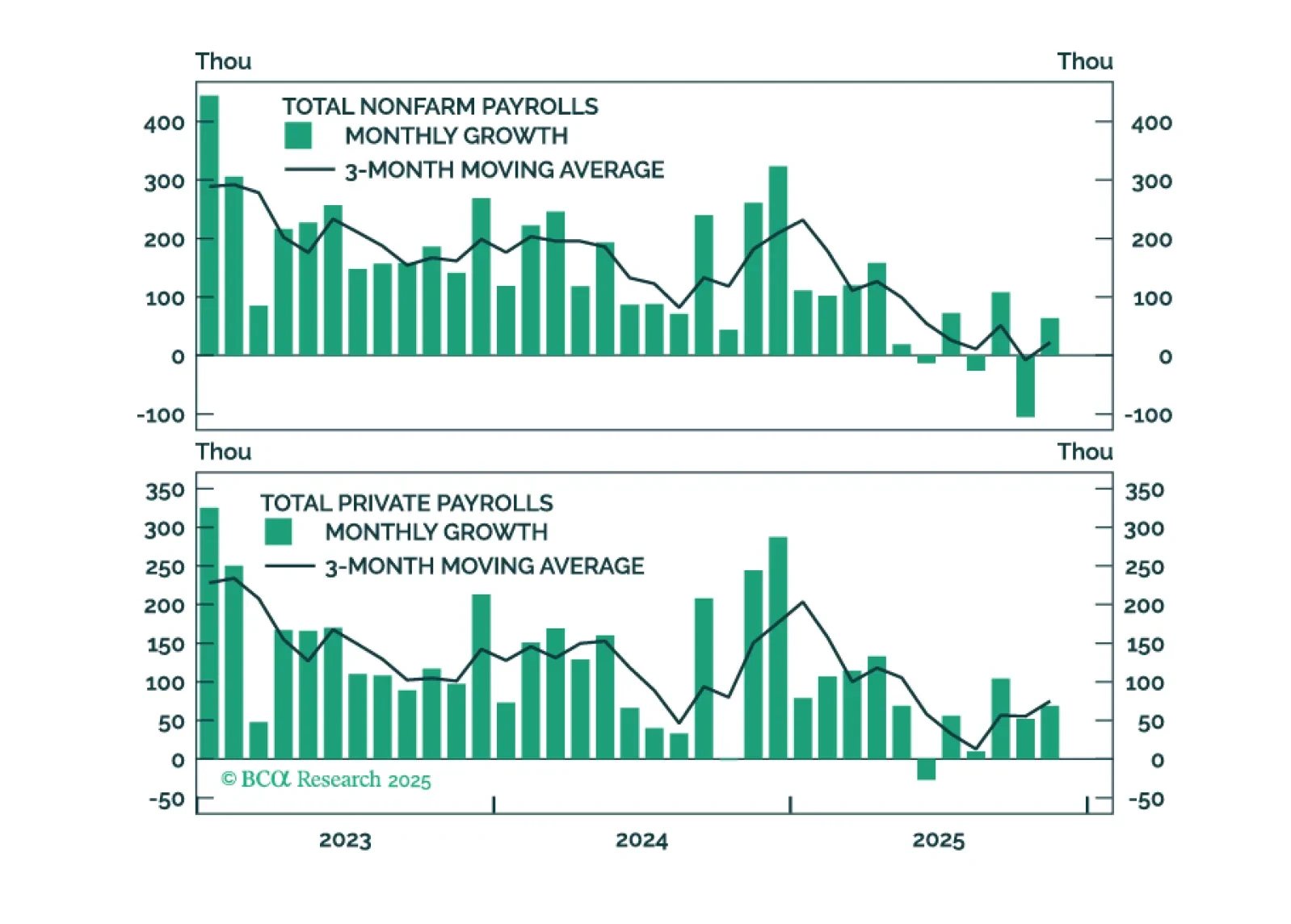 The stimulus measures driving the post-COVID expansion were beginning to wane after five years and pointing the economy in the direction of an organically occurring recession. Now that DOGE and the multi-front trade war have sped up the timetable, we reiterate our risk-off recommendations.