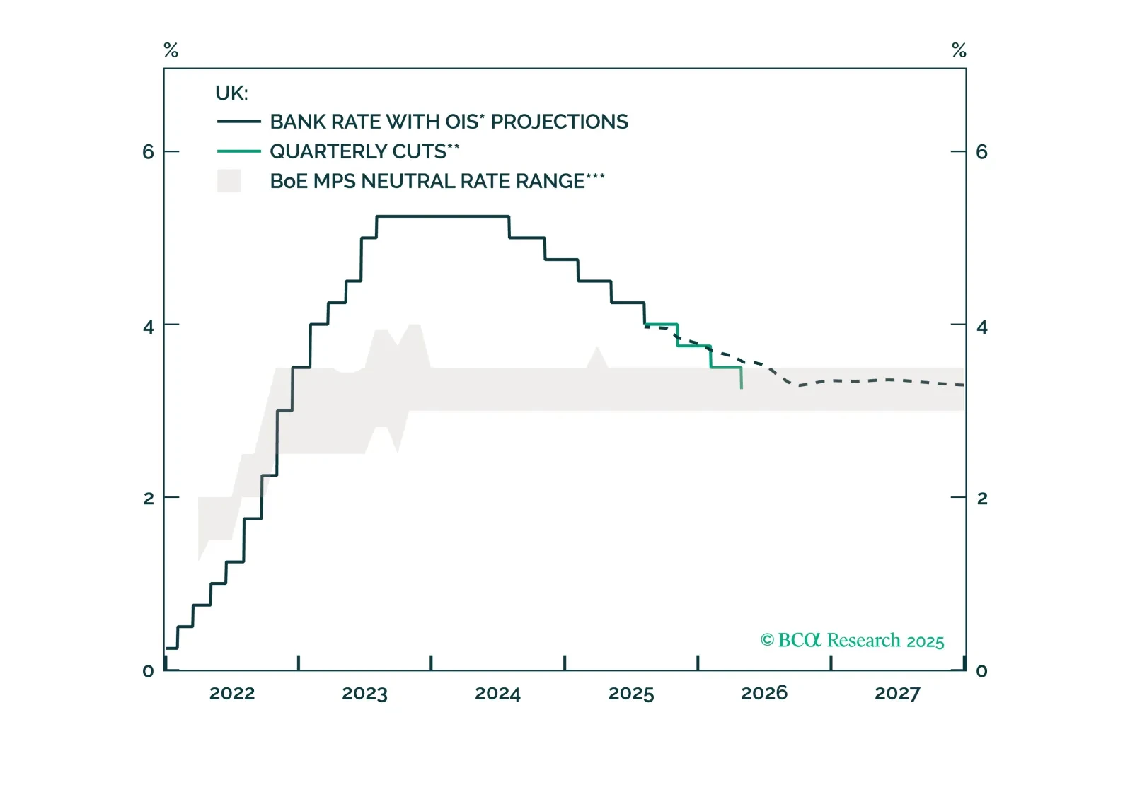 The BoE is easing, but risks falling behind. Labor and growth cracks are starting to emerge, and the Bank may soon be forced to move more decisively. This report outlines why gilts remain a buy and sterling’s path is diverging vs. USD and EUR.