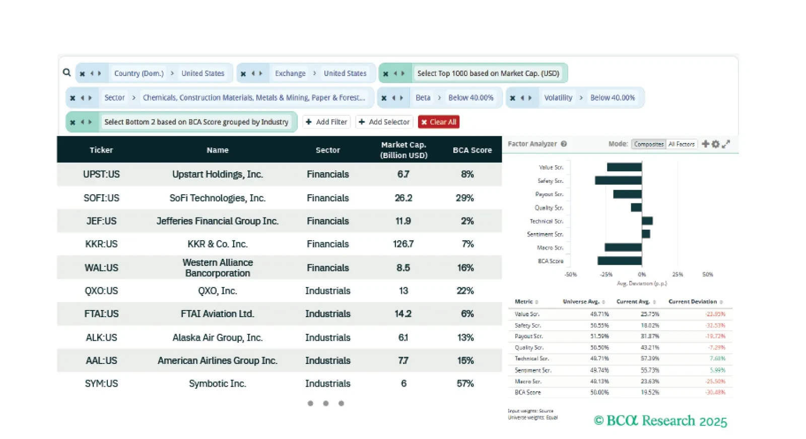 This week we develop two ideas with three screeners. The first identifies deep cyclical sectors that continue to outperform post Liberation Day in the US. We provide two screens to identify equity opportunities for this.  Our final screener identifies momentum stocks that are cheap and trending and will benefit from a soft landing.