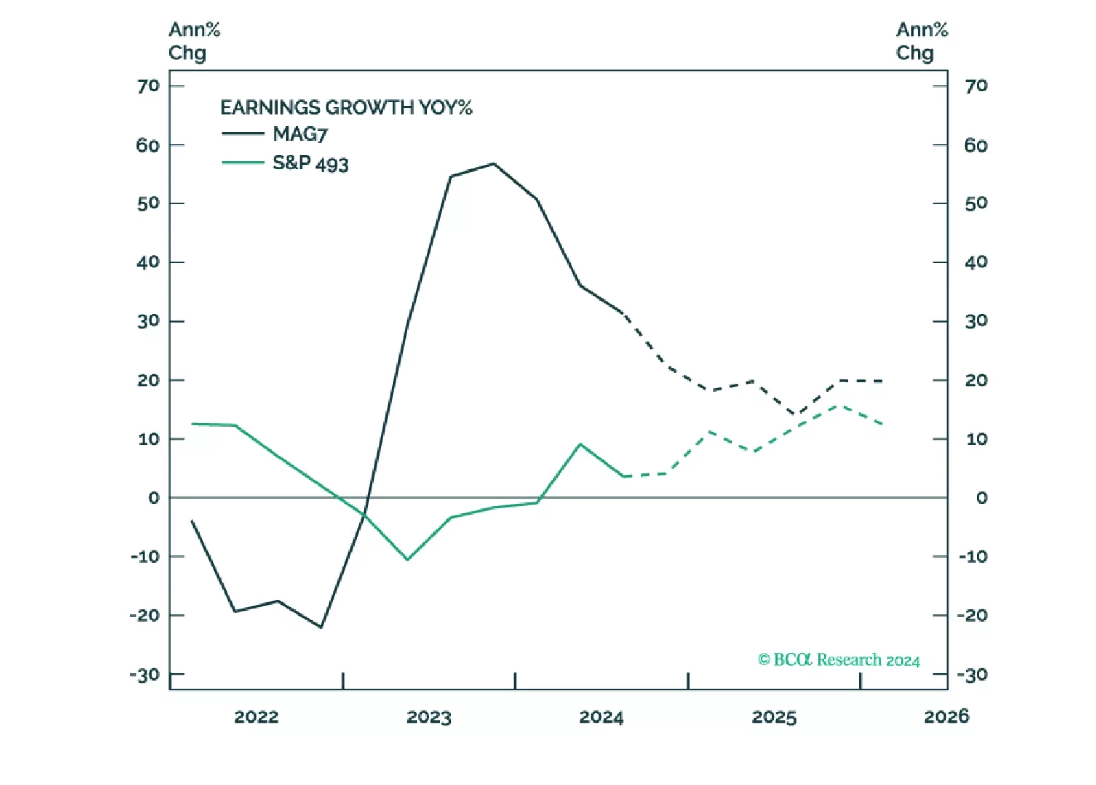 Trump's policies aim to support domestic producers and will be pro-growth and inflationary, at least initially. This environment is supportive of equities. Earnings will likely be strong, but elevated valuations make equities prone to a correction. Earnings growth broadening will translate into performance broadening – the S&P 493, Cyclicals, Value, Small and Mid are likely to outperform.