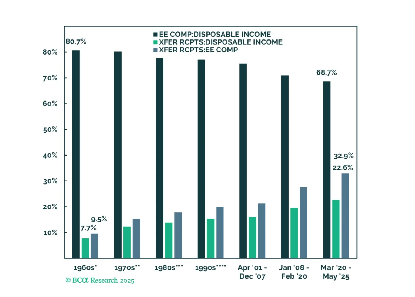 Our Special Report is a graphical comparison of the consumer’s position in the current cycle to every cycle from 1960 forward. The bad news is that disposable income is increasingly reliant on government transfers and the labor market is softening. The good news is that the balance sheets of households in the lower half of the wealth distribution have improved a lot.