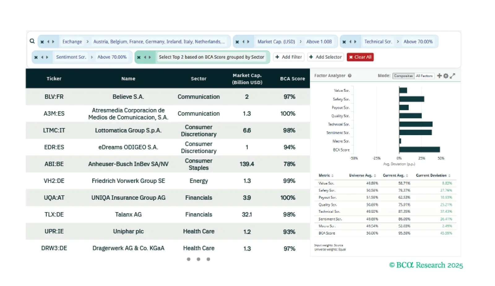 This week our three screeners explore: Equity trades across the Euro Zone focusing on Technicals and Sentiment; US Oil, Gas and Fuel stocks; and European Small Caps.