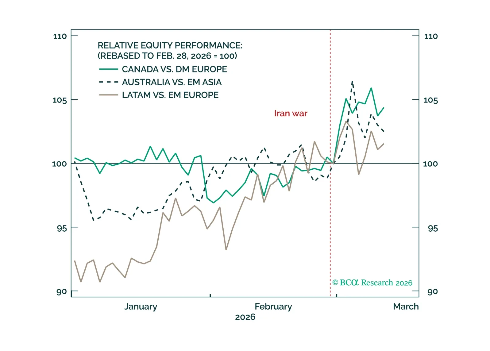 Middle East hostilities have triggered risk-off moves and pushed oil prices higher. Previous geopolitically driven oil price disruptions suggest that speed, persistence and equity market vulnerability relate to the degree of the market sell off. At the other end of the spectrum, energy stocks should benefit, but have already rallied significantly.