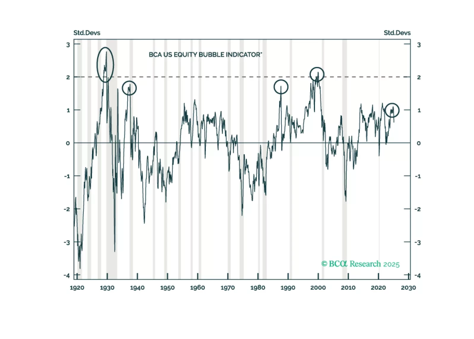 In Section I, Doug notes that weak US consumer sentiment is beginning to manifest. A wide sweep of consumer-facing companies have lowered guidance, and monoline credit card lenders shed nearly 20% over just three weeks across late February and early March. If the US enters a recession sometime this year as we expect, it will likely lead to a global recession and a global equity bear market. Investors should remain defensively positioned. In Section II, Jonathan presents a new indicator that investors can use to track the odds of bubble formation in real time and shows how it fits into a larger framework that accurately explains US bear market severity over the past century. The US equity market is not in a bubble today, but it is meaningfully overvalued. Investors should expect a relatively severe cumulative loss from equities in a recession scenario.