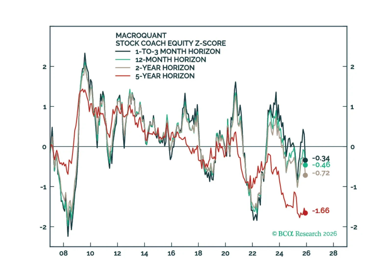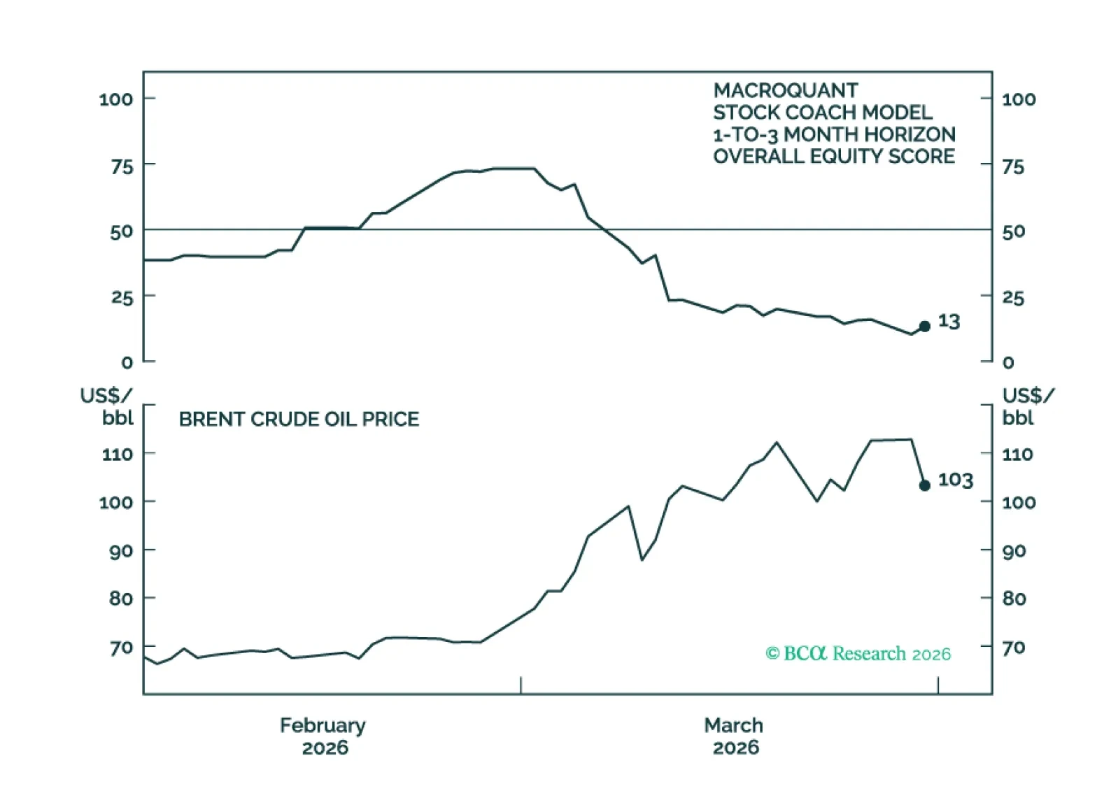 MacroQuant recommends a strong underweight position in equities, favors a below-benchmark duration stance in fixed-income portfolios, has become neutral-to-slightly positive on the US dollar, has downgraded gold to neutral and copper to a strong underweight, and is bullish on oil.
