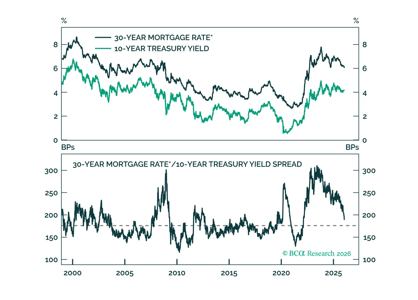 Mortgage spread tightening has run its course. Any further drop in mortgage rates will necessitate lower Treasury yields.