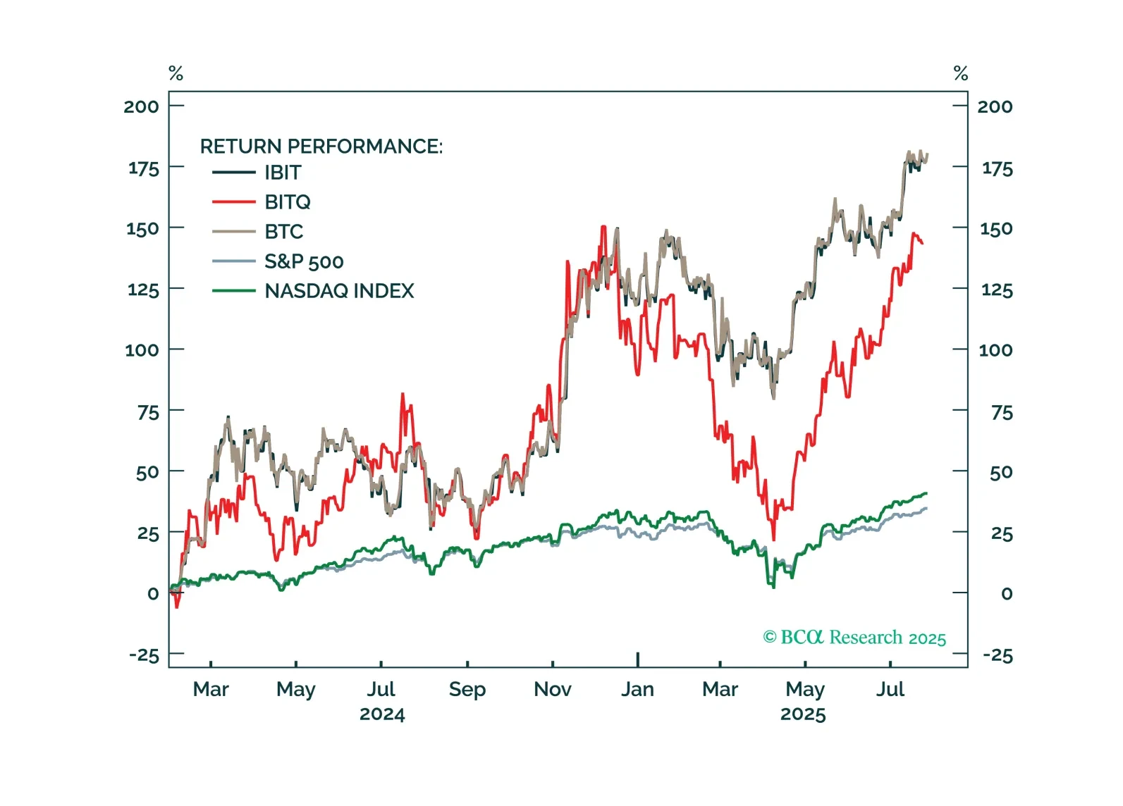 Crypto adoption is set to accelerate following the passage of the GENIUS Act, which establishes a regulatory framework for digital assets. Companies across the crypto ecosystem are well-positioned to benefit from digital asset growth and price appreciation. Crypto equities are a new strategic allocation, and we recommend using pullbacks to build a long-term position using ETFs.