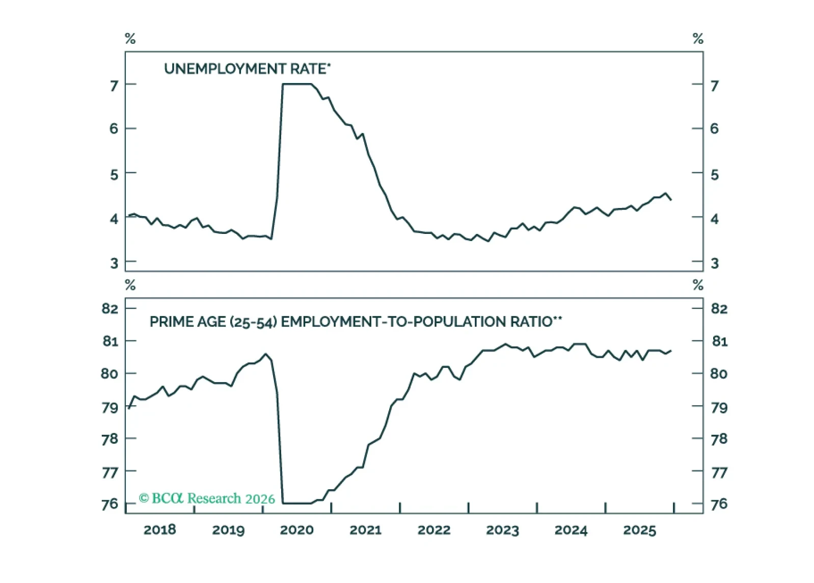 The labor market tightened in January, significantly lowering the odds of a H1 2026 rate cut. Rate cuts driven by lower inflation are still likely in H2 2026.