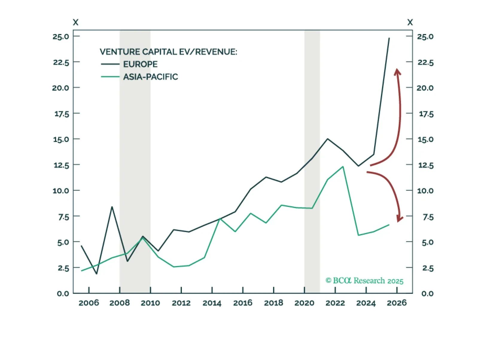 European euphoria is overdone. The most exceptional asset class in Europe is Infrastructure, but granular opportunities span other asset classes by sector and country. Venture Capital is a North America and Asia-Pacific play. We downgrade Private Credit, and upgrade Global Buyouts. Time to take profits on Long-Short Equity Hedge Funds.