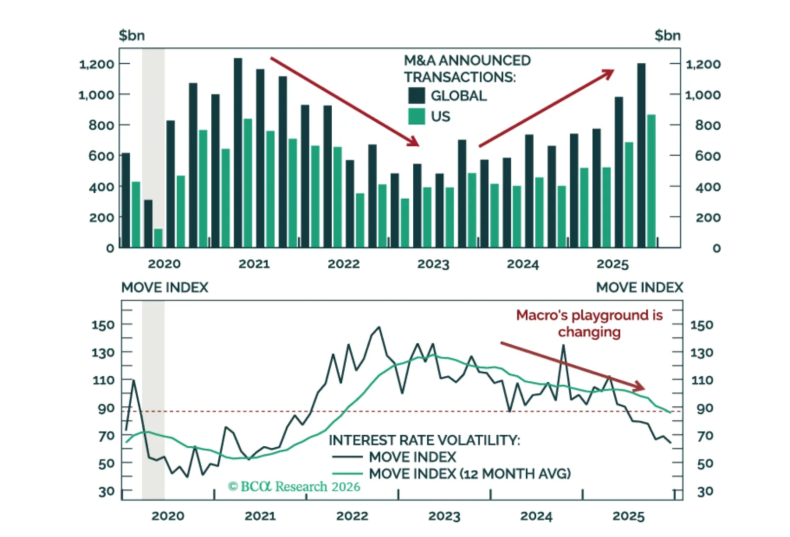 M&A activity finally reaccelerated in Q4 2025—it’s just the start. Macro Hedge Funds have outperformed with top-decile performance from Discretionary Macro—but that’s towards the end. We move Macro from overweight to underweight and Event Driven from neutral to overweight.