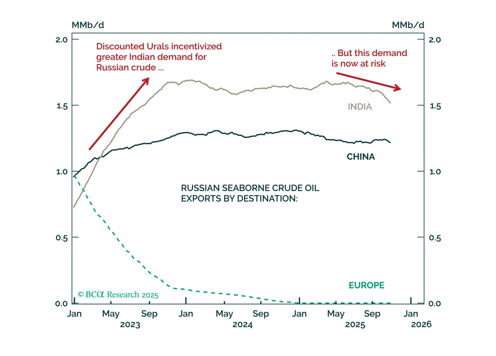 US restrictions on Russian crude exports could disrupt global oil supplies and trade flows over the near term. However, they are unlikely to have a meaningful impact on crude prices over a cyclical timeframe. Stay short Brent.