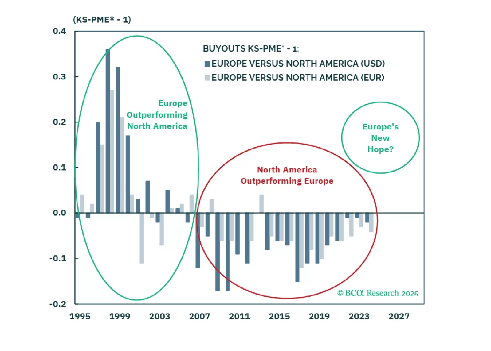 We are at a pivotal moment for Europe, supported by structural reforms and macro catalysts. While expanding credit markets and lower rates favor Private Equity over Private Credit, opportunities vary by segment. Large+ Buyouts are attractive as markets have priced in structural challenges. We downgrade Europe Private Credit, remain neutral on Europe Private Equity broadly but overweight Europe vs. North America in PE portfolios.