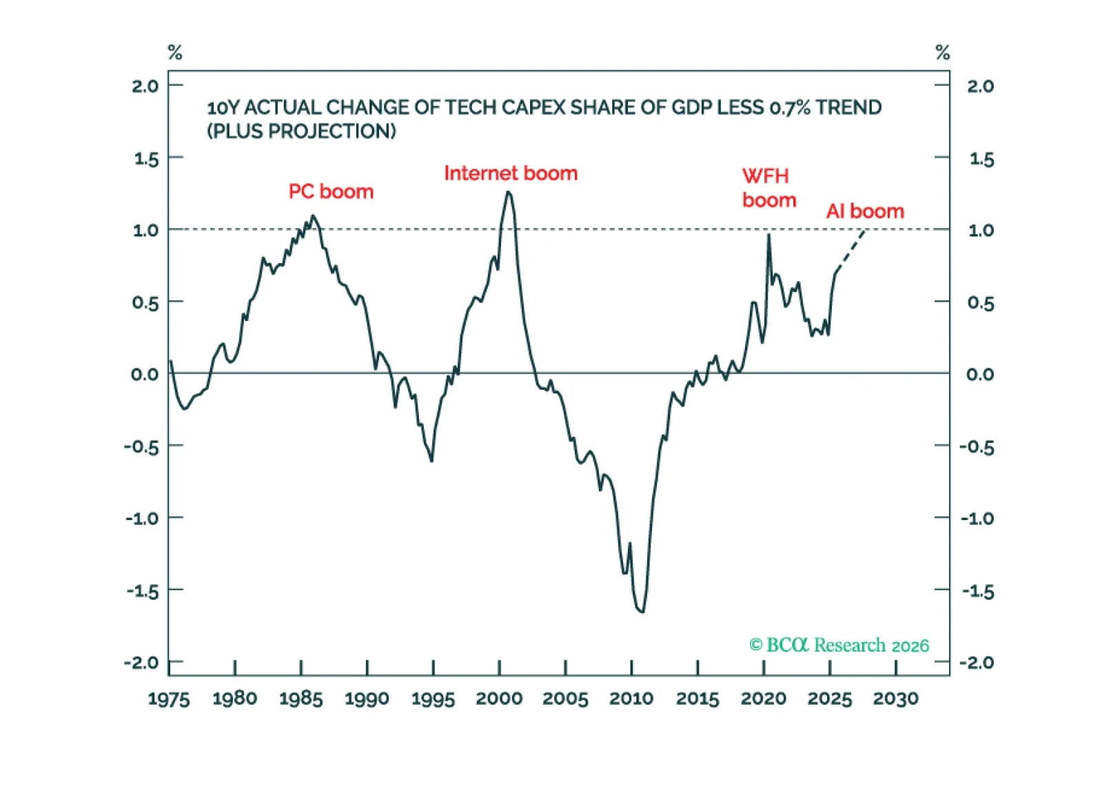 Broad GenAI adoption and monetization, alongside falling inference costs, should make hyperscalers’ and enterprise investments worthwhile. While the GenAI boom echoes the dot-com era, it differs in key ways: Valuations are elevated but not extreme, and the rally is still underpinned by solid earnings growth. With few warning signs flashing red, the bull market likely has further to run, though a period of consolidation is overdue.