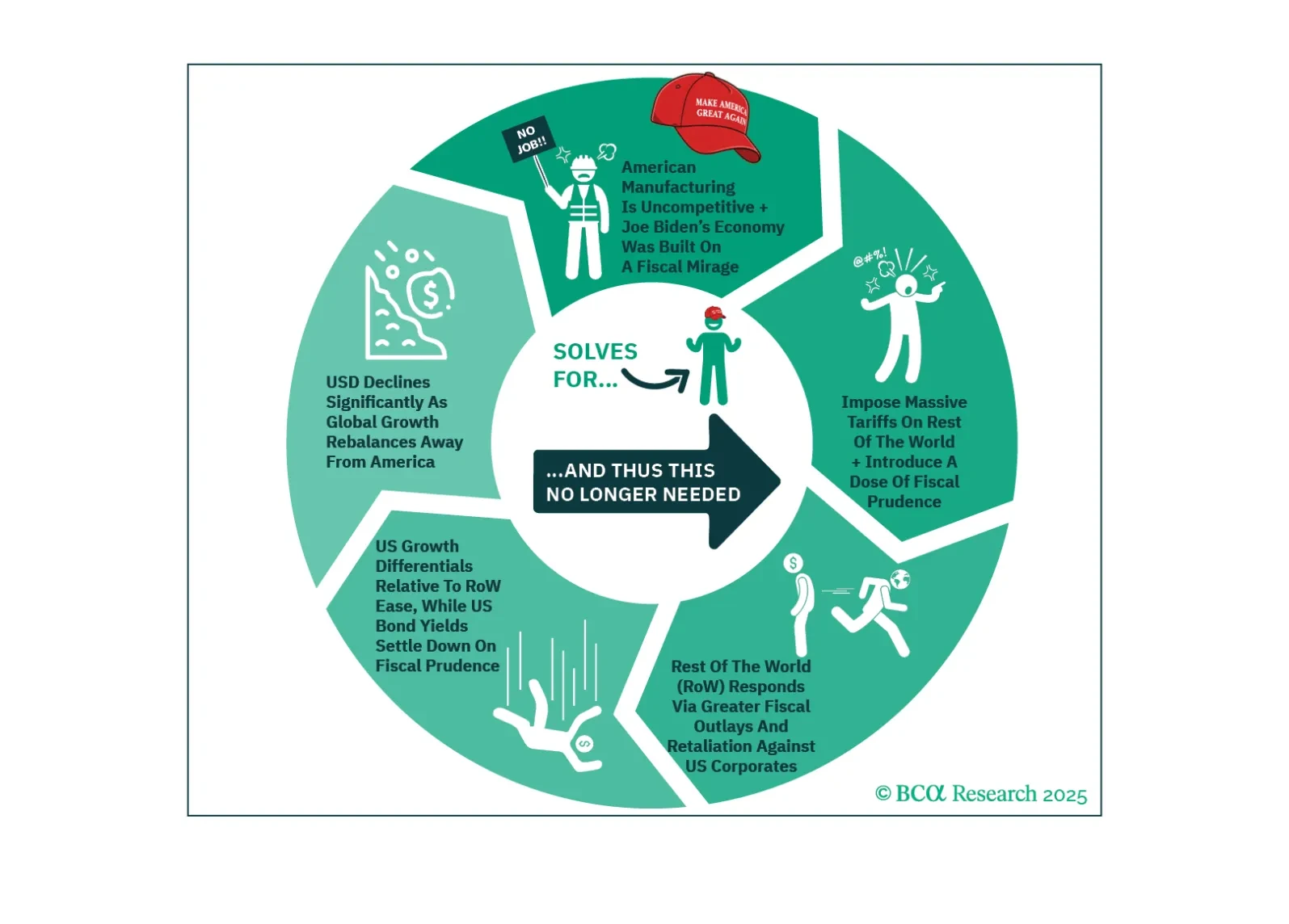Negotiations on trade, Iran, and Ukraine will prove critical this month. Markets will remain volatile because positive data surprises enable the White House to press its hawkish tariff hikes, while negative surprises force the White House to backpedal.