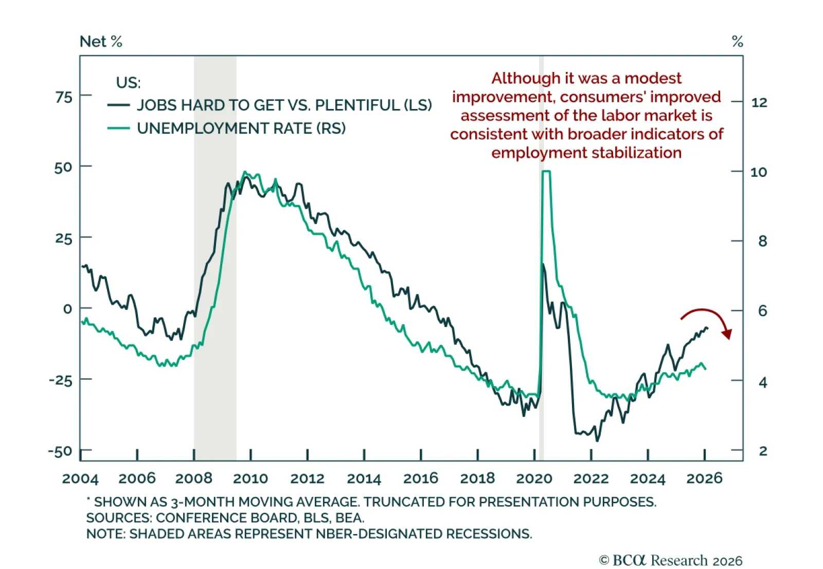 The February Conference Board survey suggests improving labor-market perceptions, consistent with stabilizing growth momentum. The headline index rose to 91.2 from an upwardly revised 89.0 in January, beating estimates. Both present conditions and…