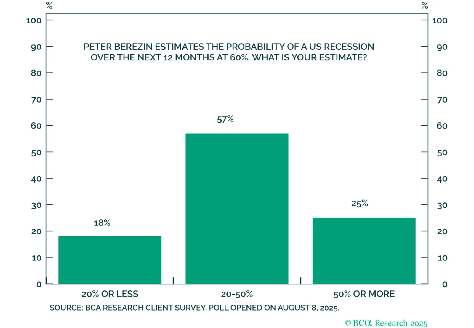 Peter Berezin estimates the probability of a US recession over the next 12 months is 60%. But in the latest weekly poll on the Have Your Say section of BCA's website, the majority of BCA clients disagree and see the risk as less than 50%. Only 25%…
